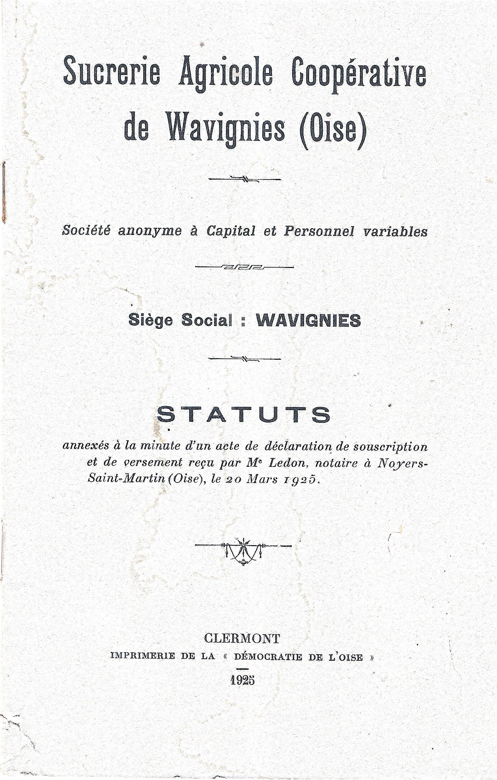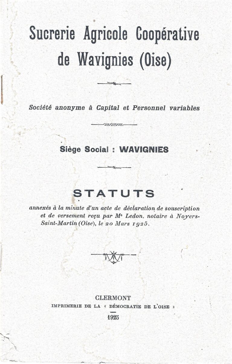 Sucrerie statuts